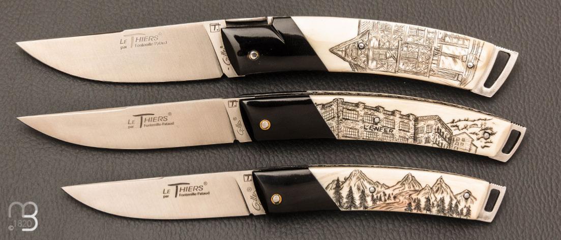 •  Coffret collection de 3 couteaux "  le Thiers® Scrimshaw " par Fontenille-Pataud