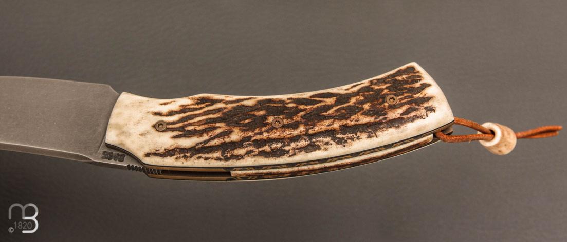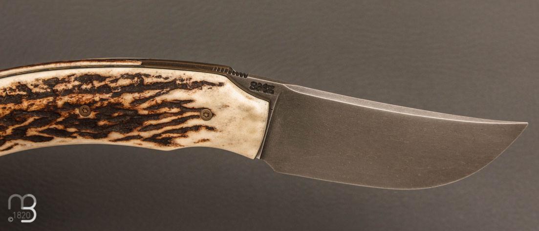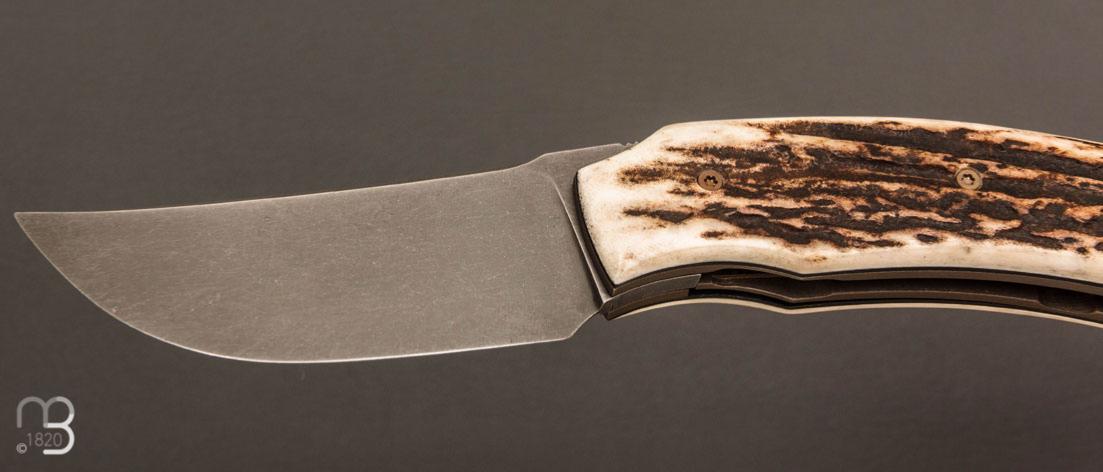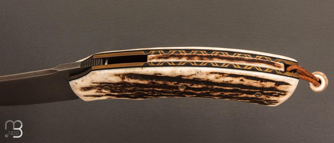•    Couteau " 1310 " liner lock bois de cerf et RWL34 de SMZ Flammes de forge