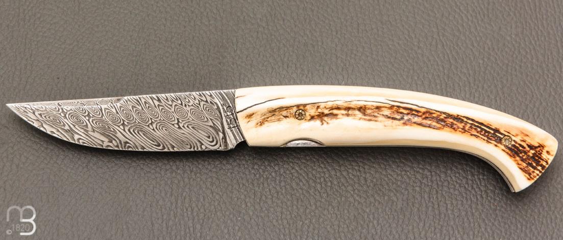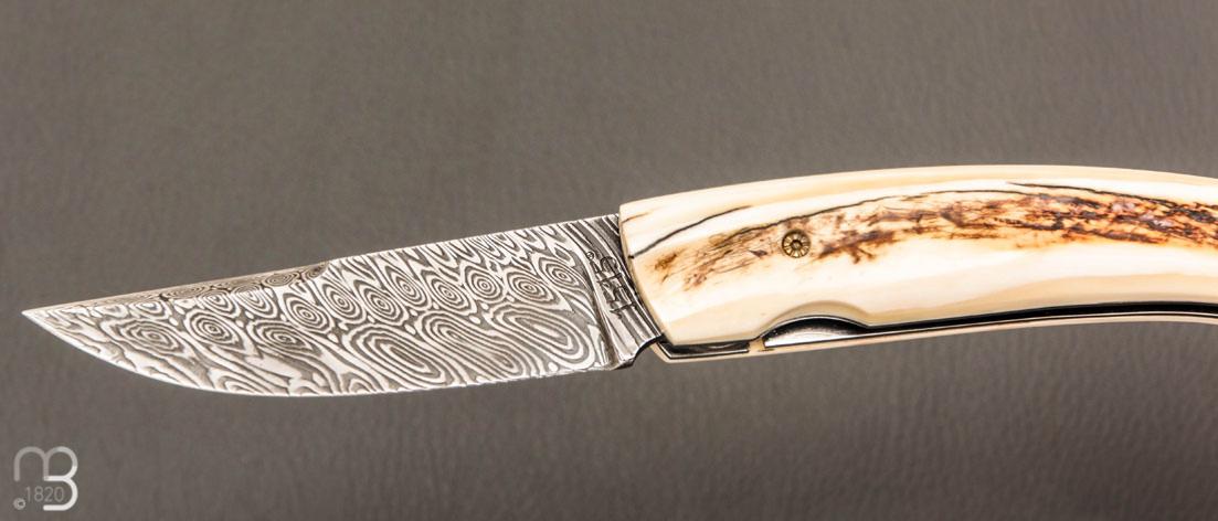 Couteau 1515 avec de joli plaquettes en ivoire de phacochère et lame damas