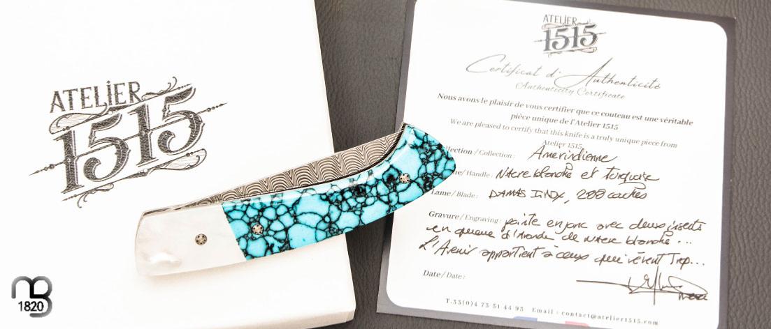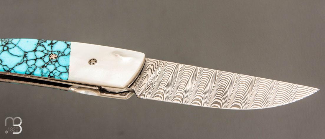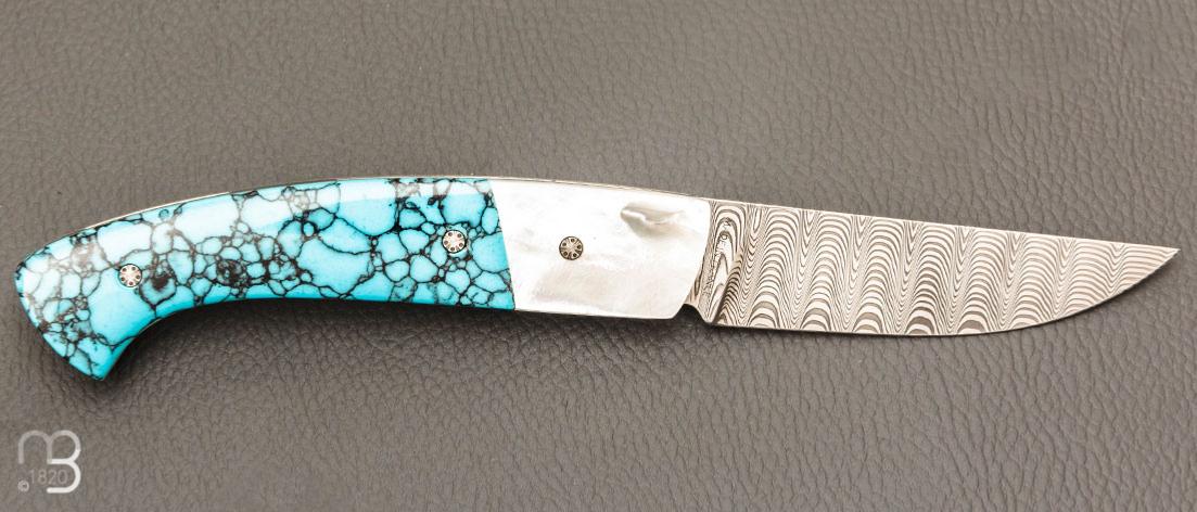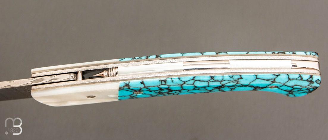 Couteau " 1515 collection Amérindienne " par Manu Laplace - Nacre blanche et turquoise