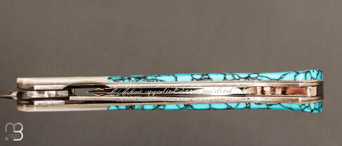Couteau " 1515 collection Amérindienne  " par Manu Laplace - Nacre blanche et turquoise
