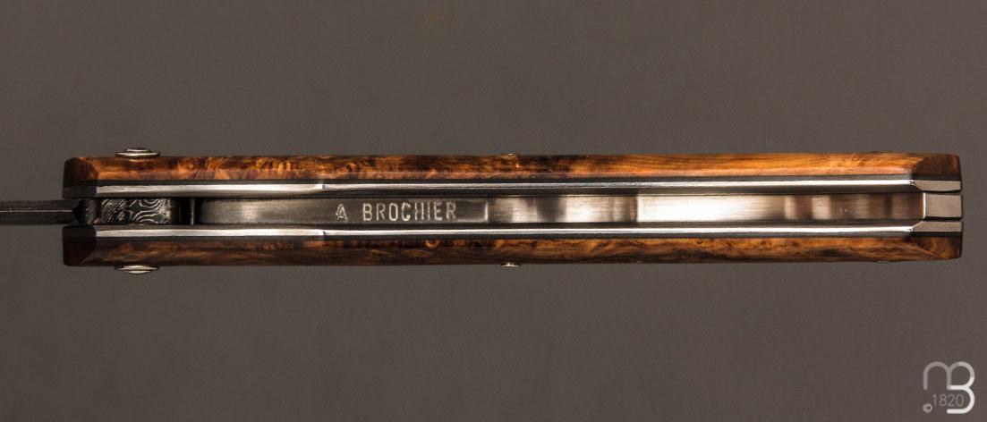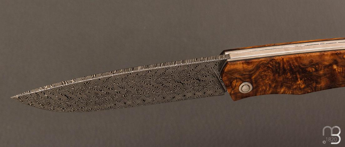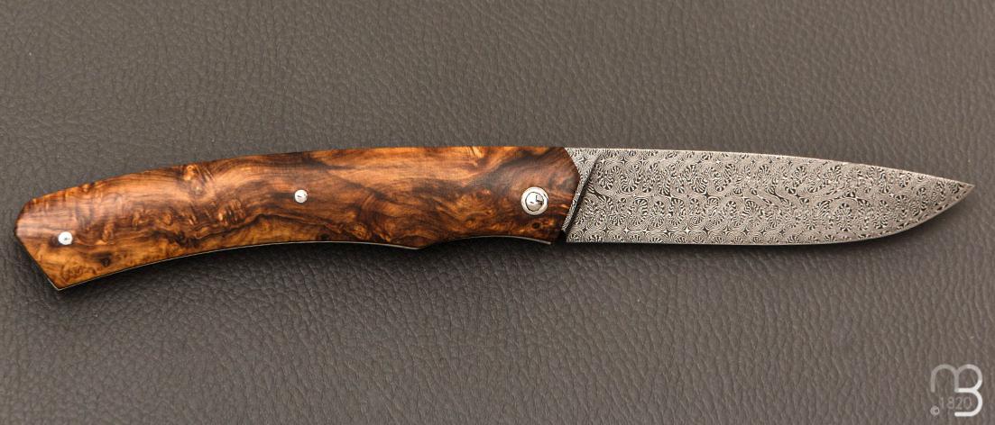 Couteau " 1820 Berthier " par Anthony Brochier - Damas multi-barreaux et loupe de buis stabilisée