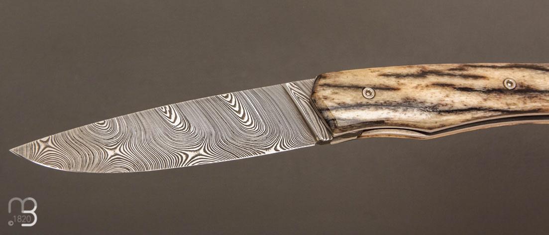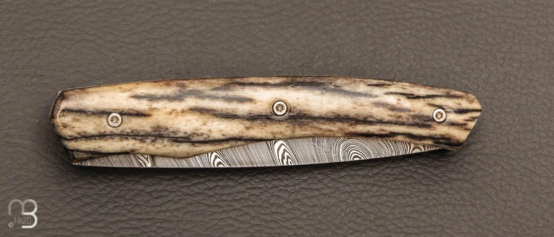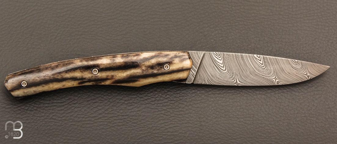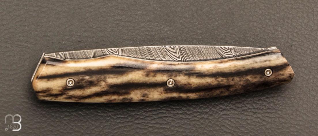 Couteau "1820 damas" - 200 ans Maison Berthier - Os de girafe et Damasteel