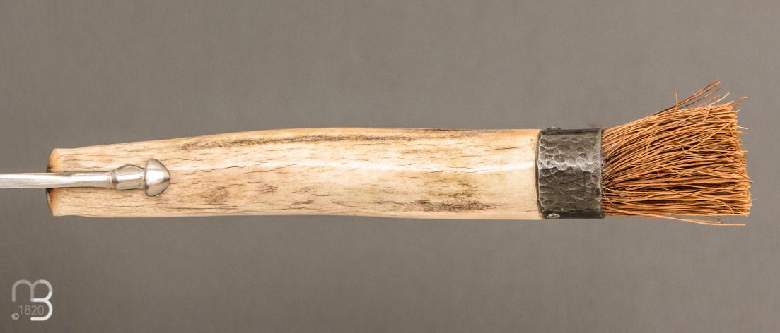 Manche en bois de cerf (plein manche), brosse réalisée avec de la fibre de coco
