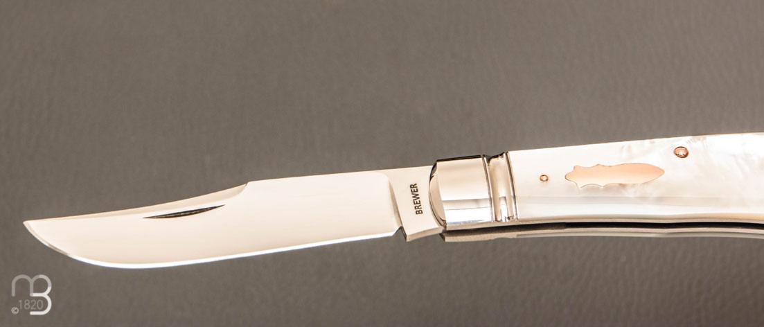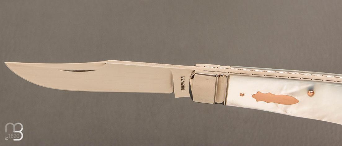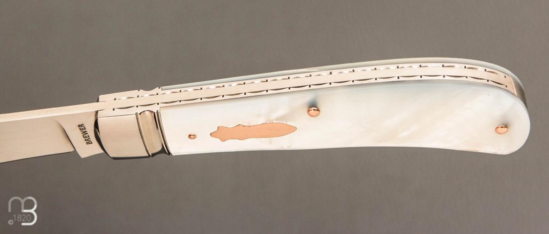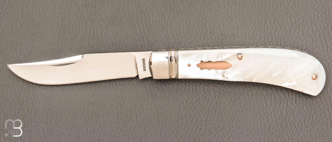 Couteau " Backpocket " de Craig Brewer - Nacre blanche et or