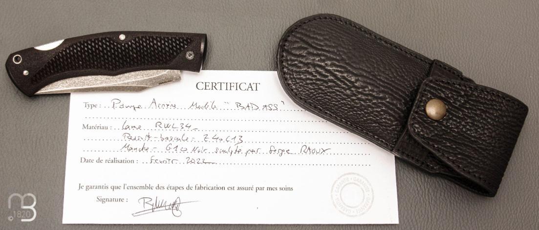 Un magnifique " Bad Ass " à pompe arrière en G10 gravé par Serge Raoux