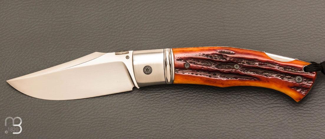 Couteau " BAD ASS " custom par Raphaël Durand - Os cerfé et lame en RWL34