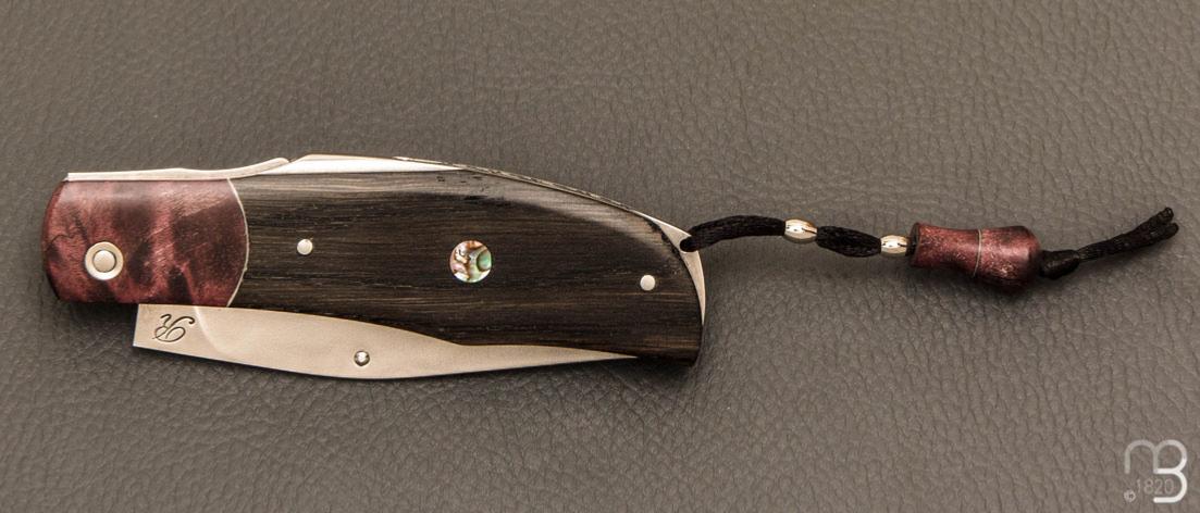 Un " Berger " avec lame en acier C130 et plaquettes en morta stabilisé par le coutelier de l'Hérault.