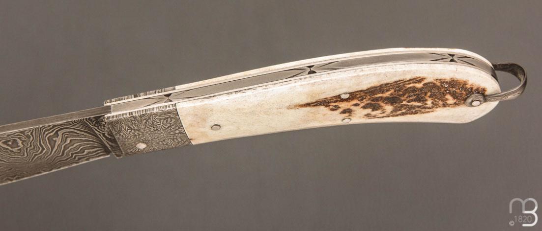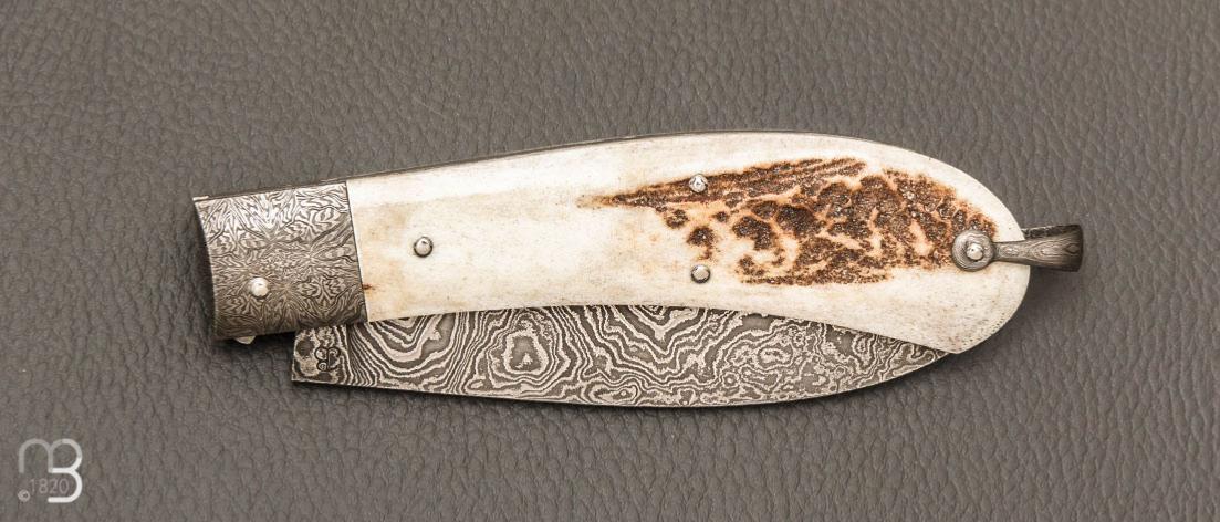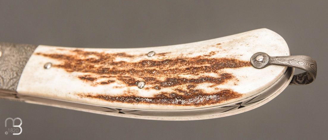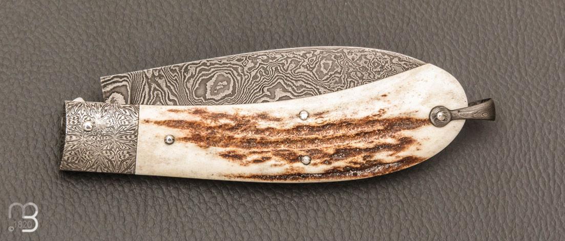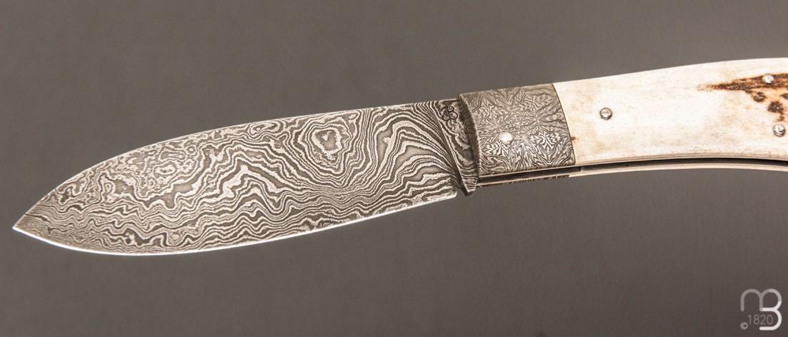 Couteau " Bombé " custom de Jérôme Bellon - Bois de cerf et damas