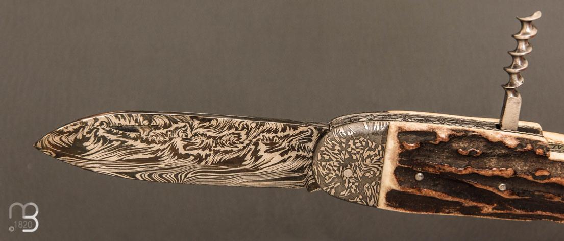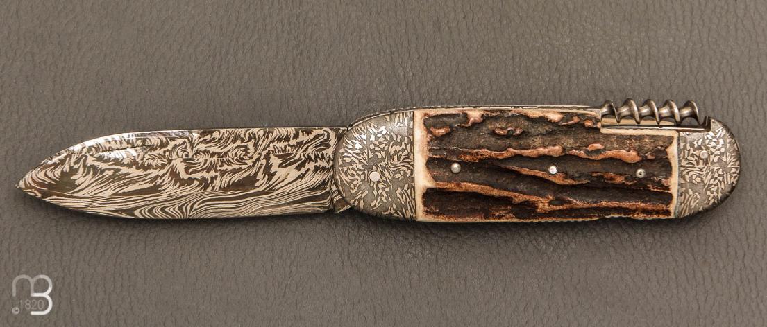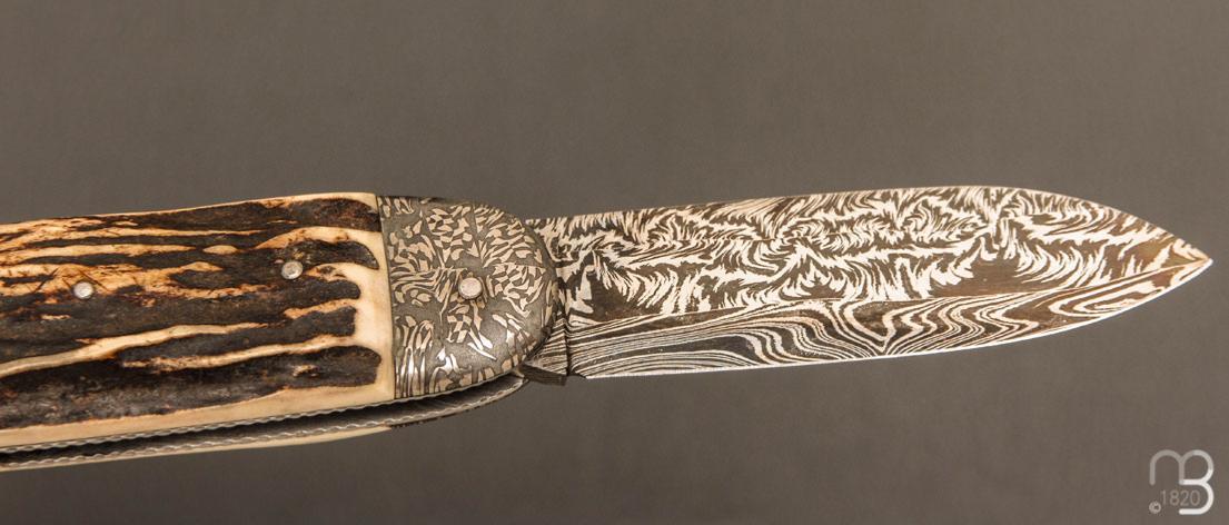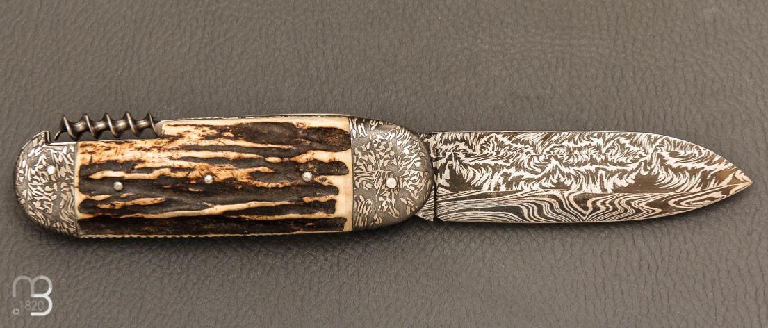 •   Couteau " Bouledogue 2 pièces " Damas de et bois de cerf Jean Pierre Veysseyre