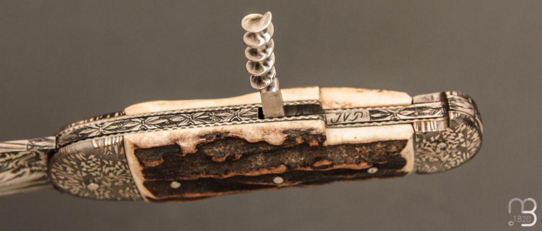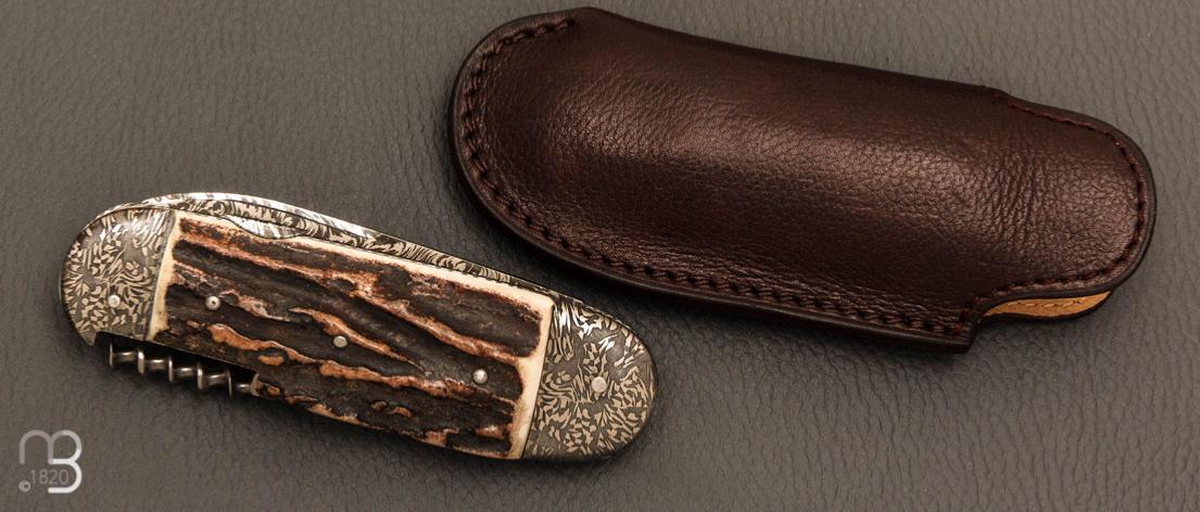 Couteau " Bouledogue 2 pièces " Damas de et bois de cerf Jean Pierre Veysseyre