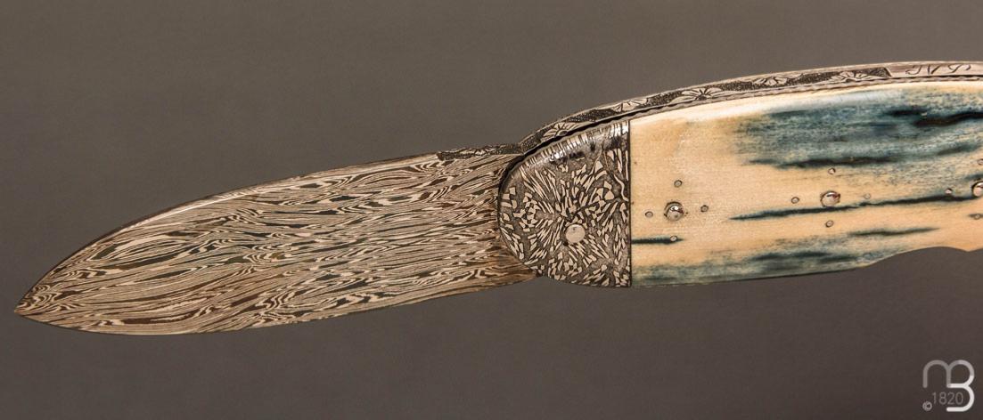 Couteau " Bouledogue" de Jean Pierre Veysseyre - Ivoire de mammouth et lame damas