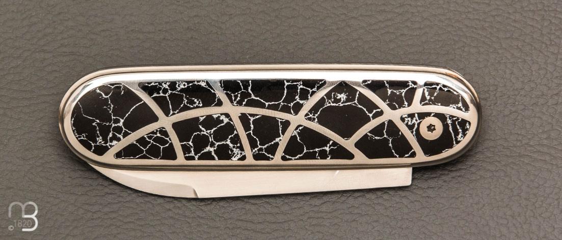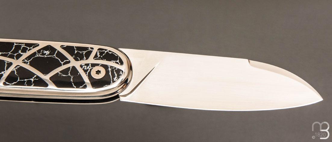 Couteau "Bull'ix" custom de Florent Dall'ava - L'atelier Dall'ava - Onyx argent et lame en RWL34