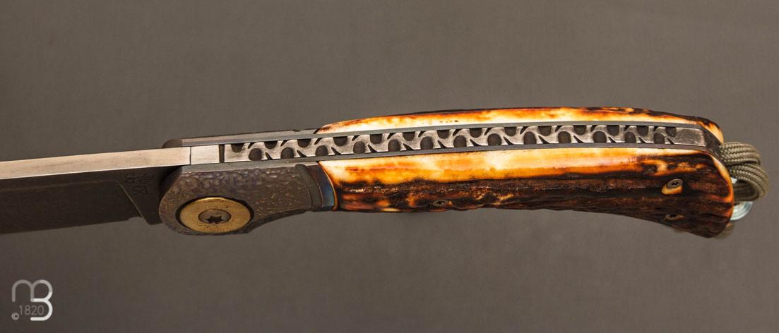 Couteau "Bullet" pliant de Gudy van Poppel - Bois de cerf et Böhler N690