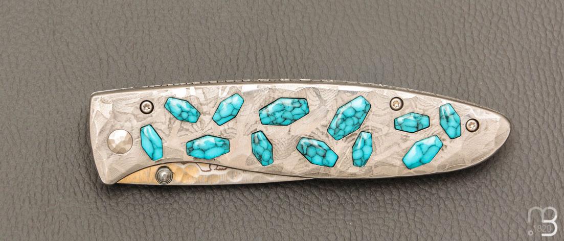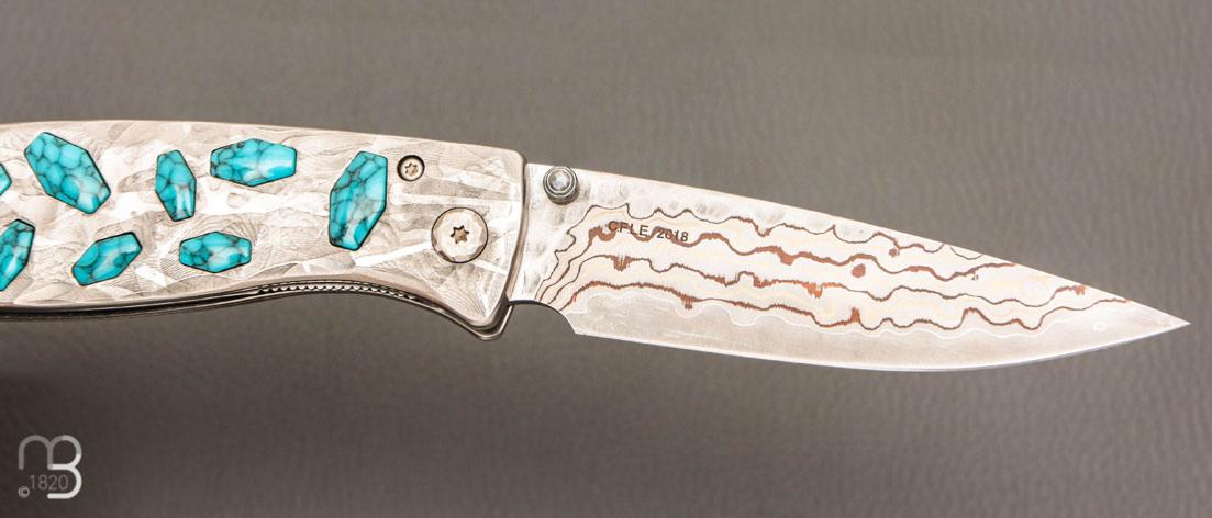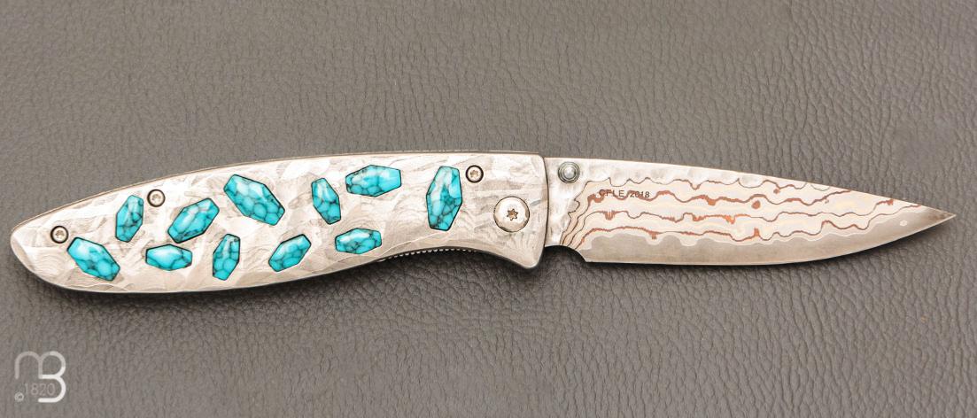 Couteau " CFLE 18 " par Mcusta - Turquoise et Rainbow damas - Pièce Unique