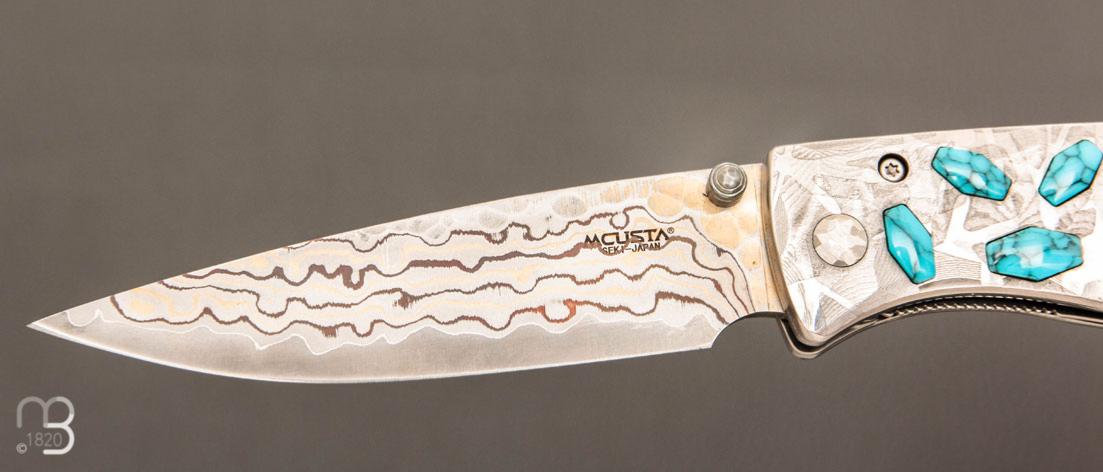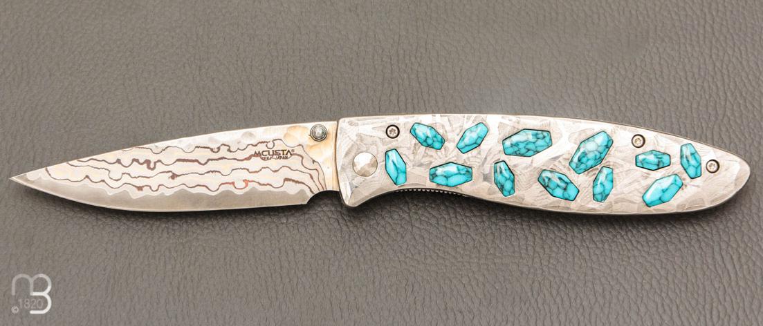 •  Couteau " CFLE 18 " par Mcusta - Turquoise et Rainbow damas - Pièce Unique