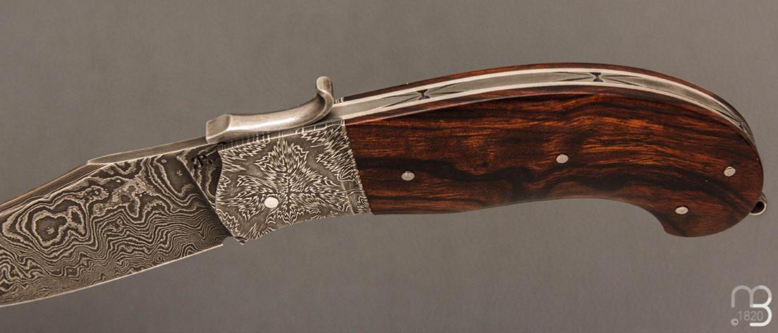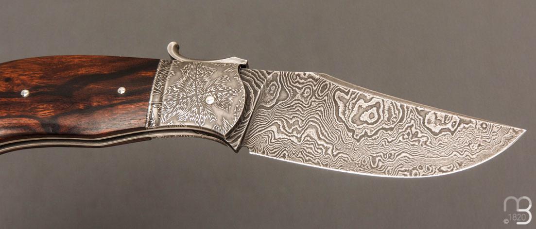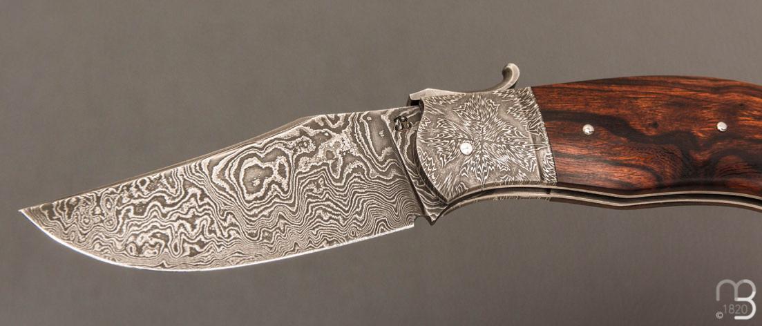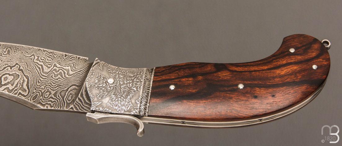Couteau " Champagny " custom à palanquille de Jérôme Bellon - Bois de fer et damas