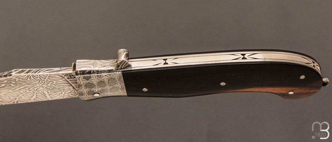 Couteau " Champagny " custom à palanquille de Jérôme Bellon - Ebène et damas
