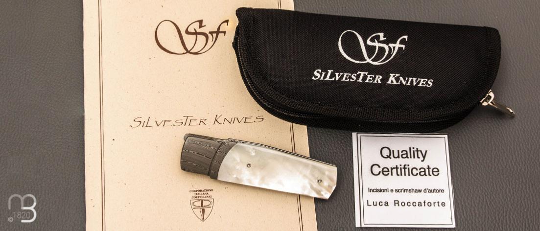 Couteau " Chiudibile " custom par Fabrizio Silvestrelli - Nacre blanche et lame damas