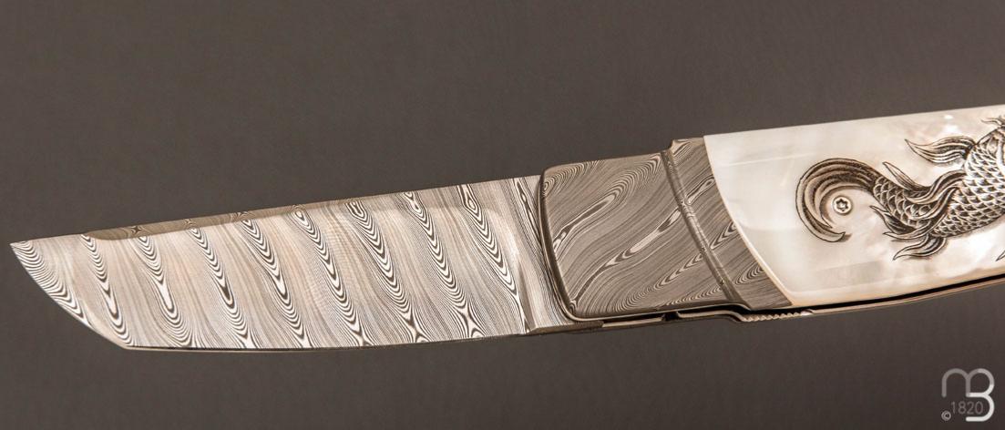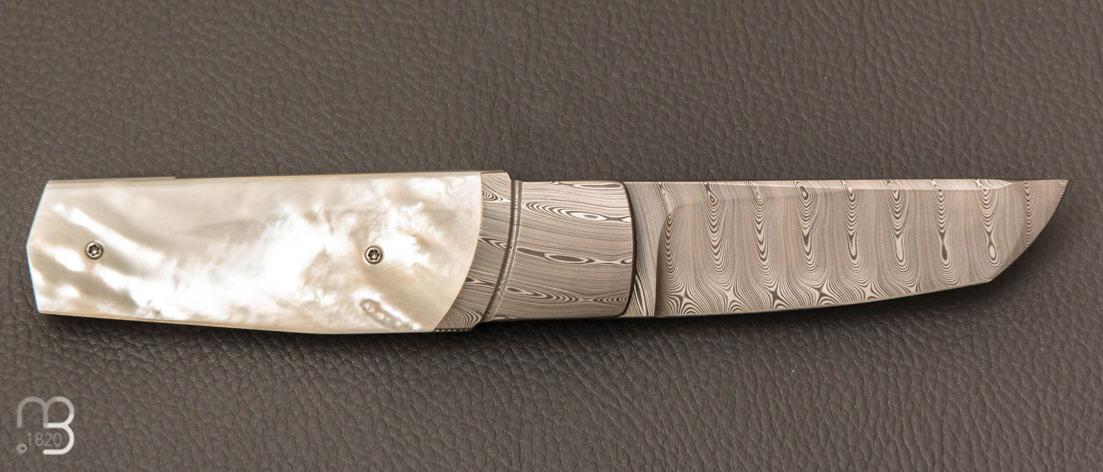 Couteau " Chiudibile  " custom par Fabrizio Silvestrelli - Nacre blanche et lame damas