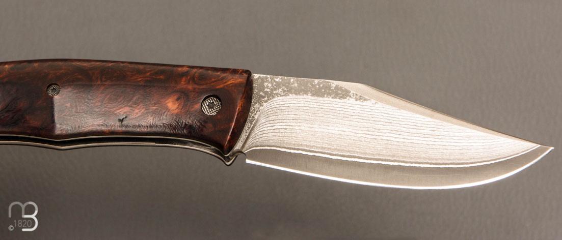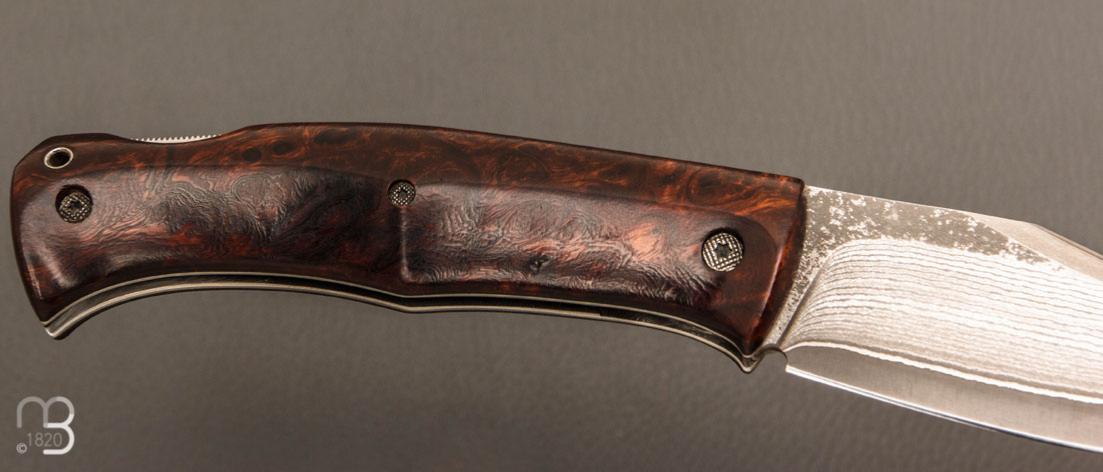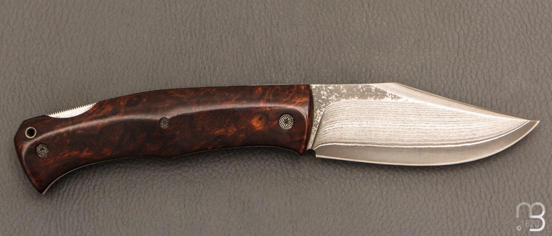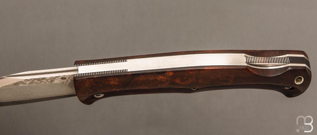 Couteau " Cim Very Bad " custom lock-back par Raphaël Durand - Bois de fer et lame Suminagashi