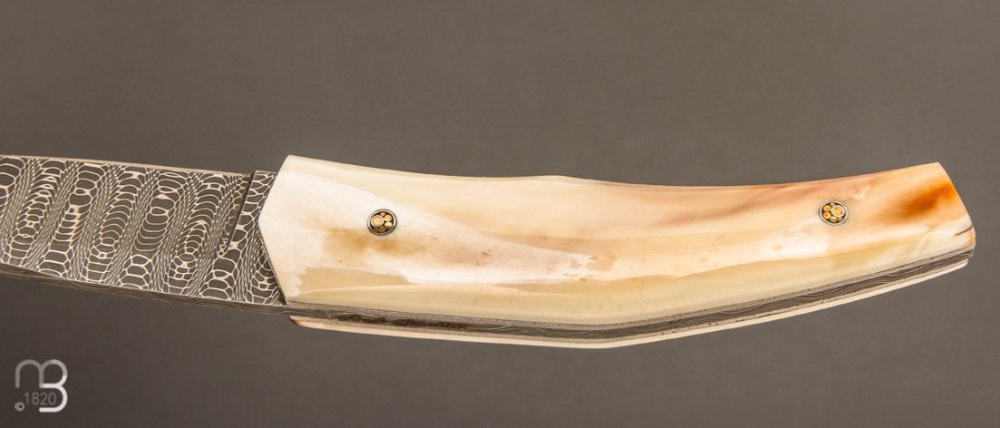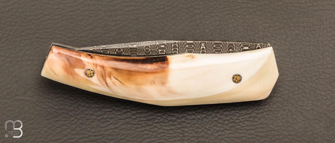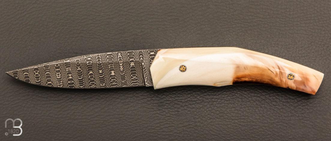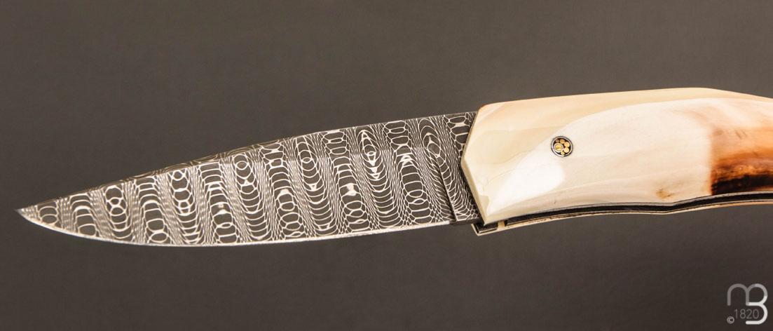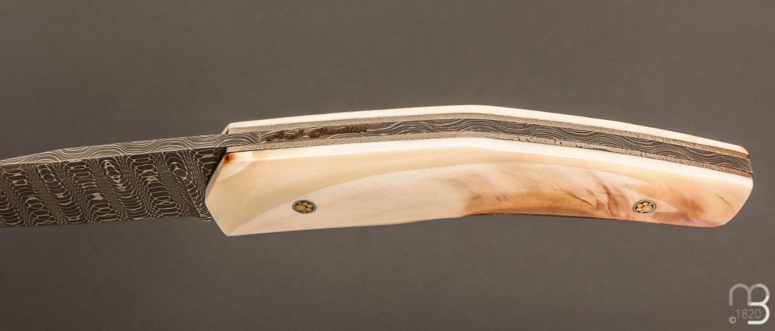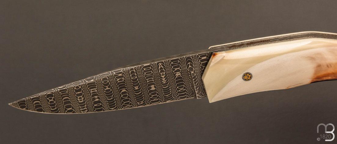 Couteau " custom " de Alain & Joris Chomilier - Ivoire de phacochère et damas "spirographe" de Vegas Forge