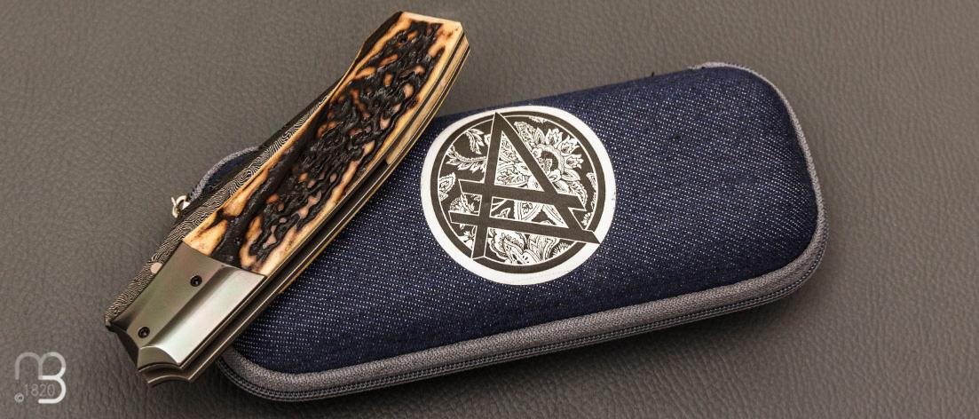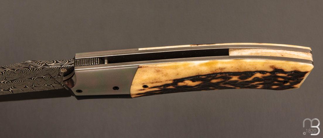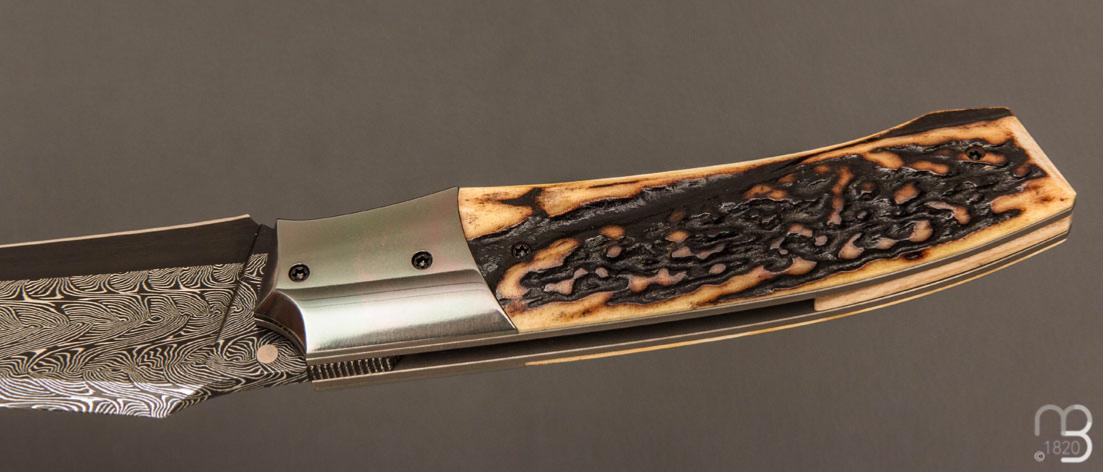 Couteau  " custom " de Berthelemy Gabriel - La Forge Agab - Bois de cerf et lame damas