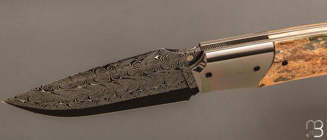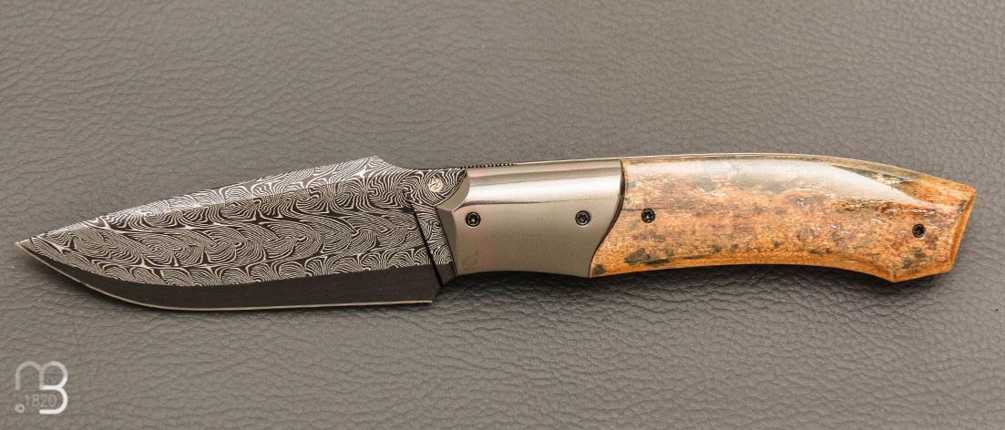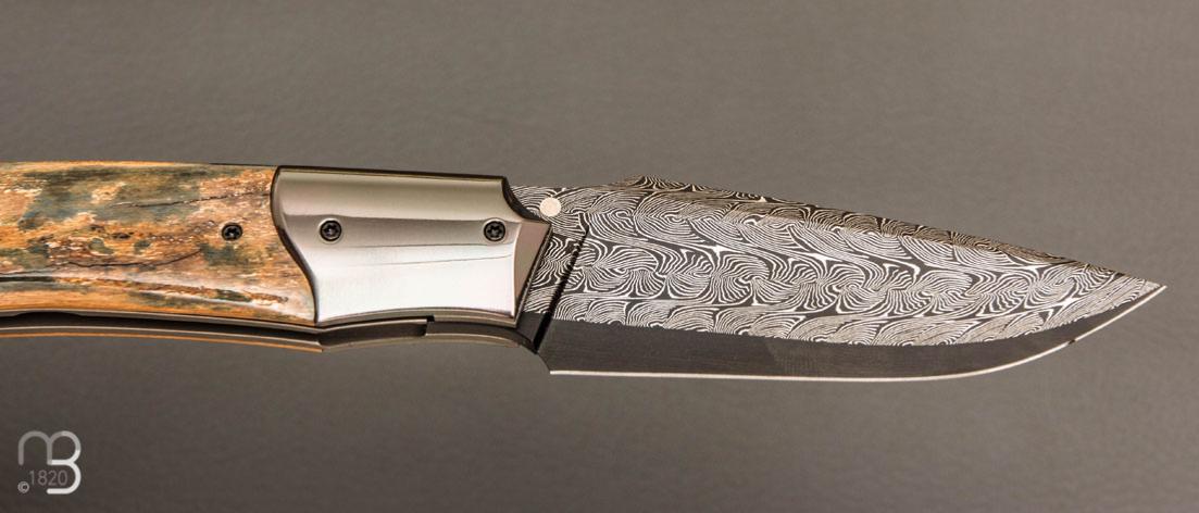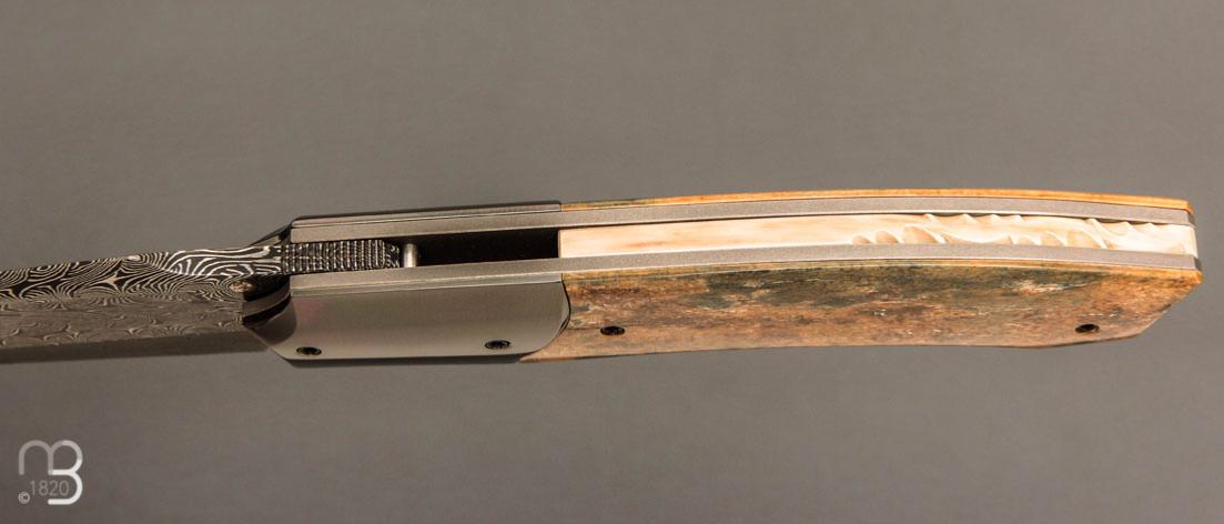 Couteau " custom " de Berthelemy Gabriel - La Forge Agab - Ivoire de mammouth et lame damas
