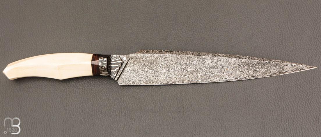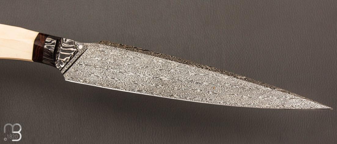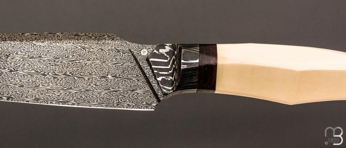 Couteau " custom " fixe de Berthelemy Gabriel - La Forge Agab - Ivoire de mammouth et damas