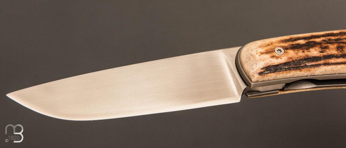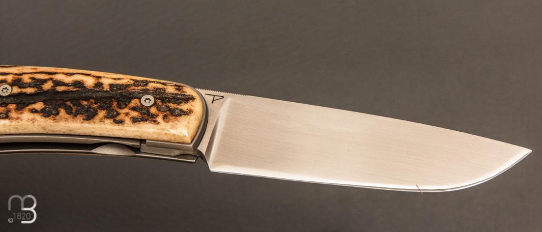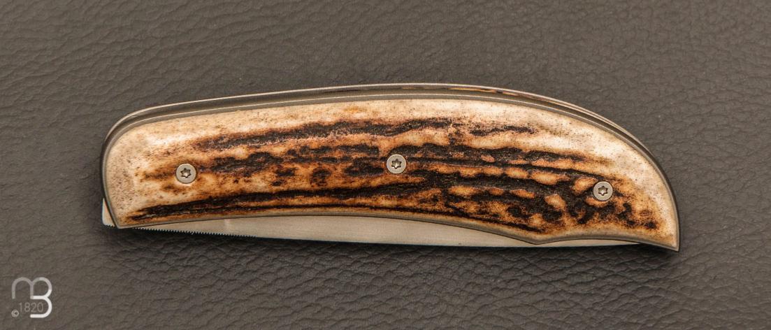 Couteau " custom " pliant de David Lespect - Bois de cerf et RWL34