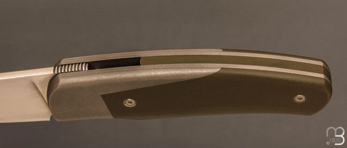 Manche composé de plaquettes en G-10 kaki et mitre en titane,