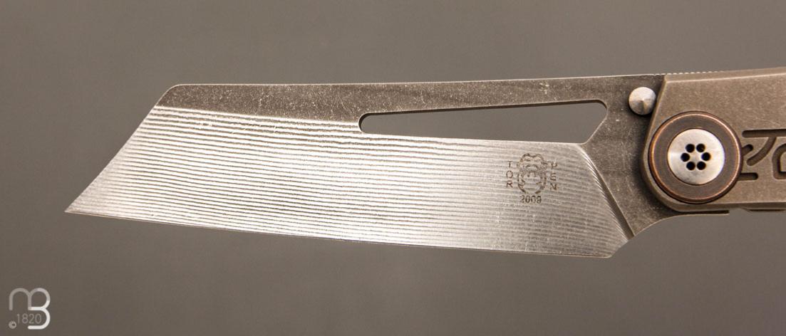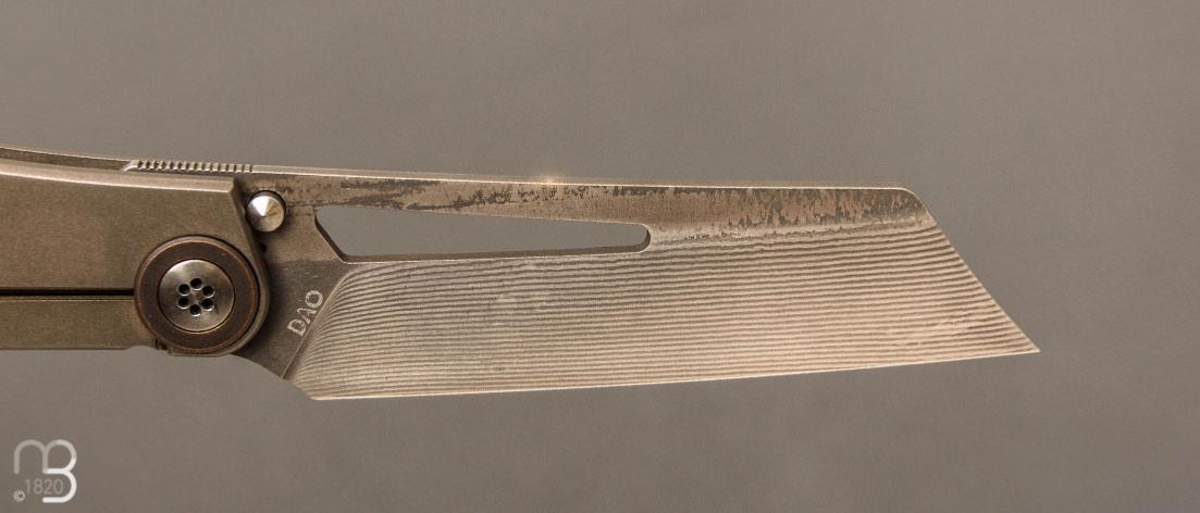 Couteau custom  " DAO frame lock " en titane par Torpen Knives - Jérome Hovaere, lame en damas Damax™