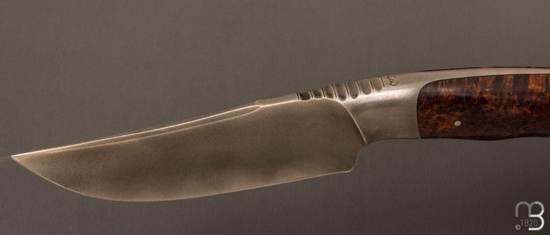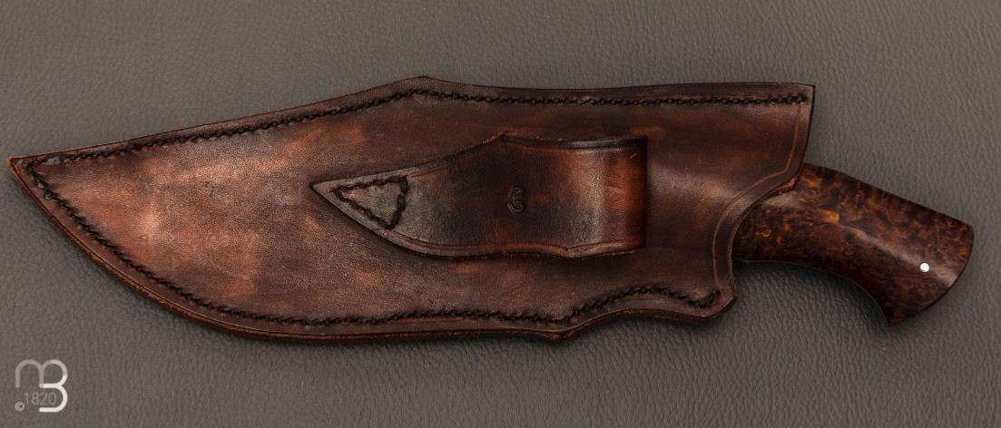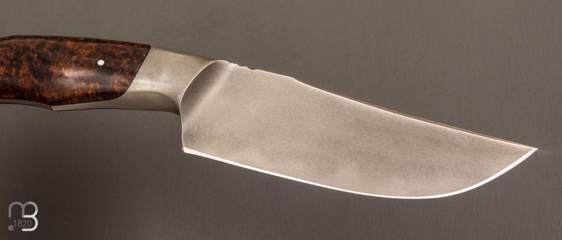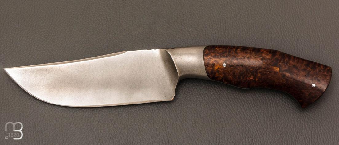 Couteau de camp " Intégral " par Mickaël Moing - Loupe de bouleau stabilisé et lame en 100C6