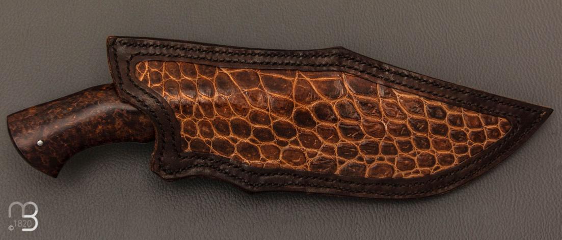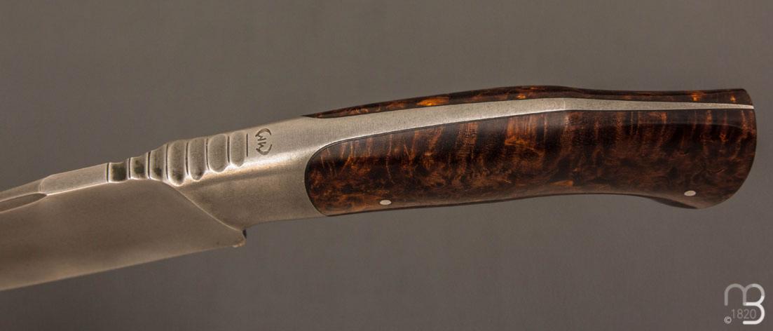 •  Couteau de camp " Intégral " par Mickaël Moing - Loupe de bouleau stabilisé et lame en 100C6