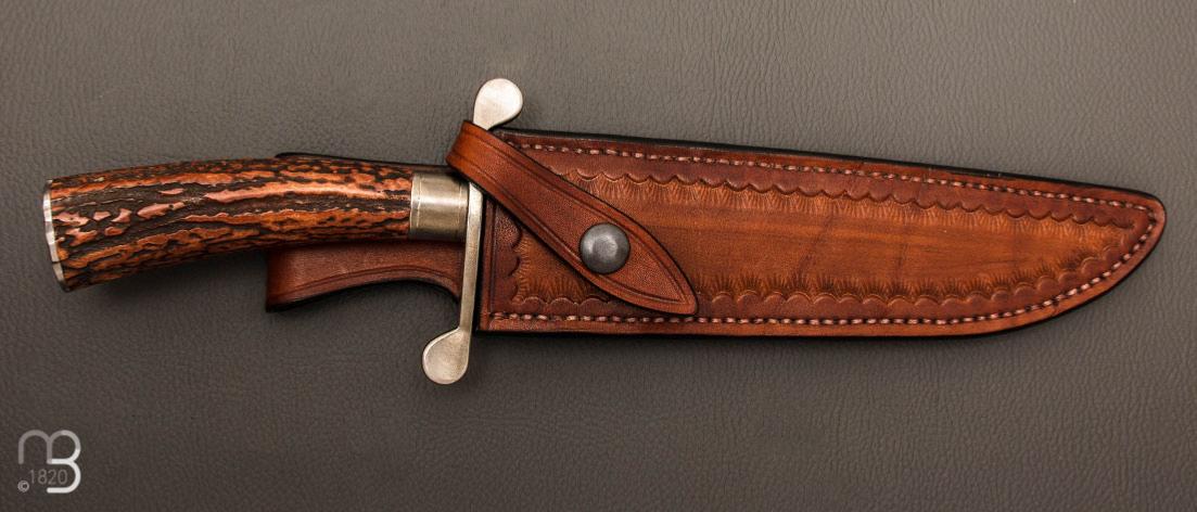 Couteau de chasse par Laurent Gaillard - Bois de cerf sambar et lame en 100C6