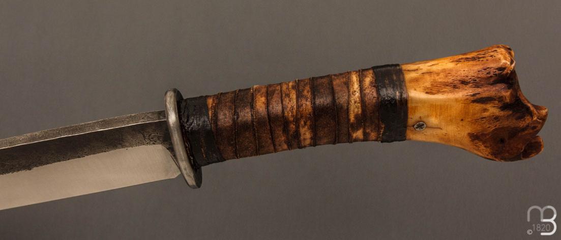 •   Couteau de chasse par Laurent Gaillard et Pierre Henri Monnet - Os de cerf et acier 100C6
