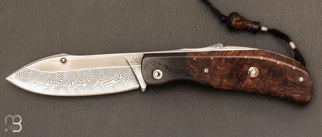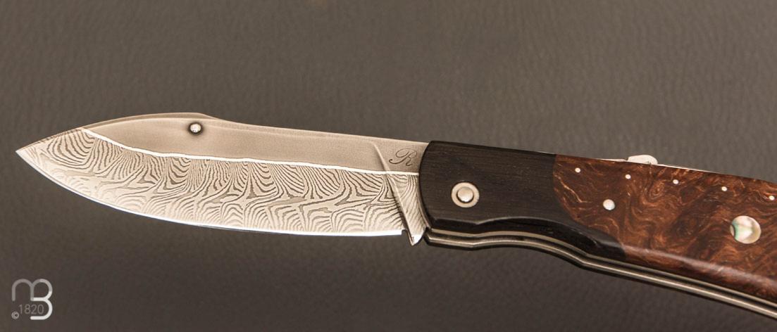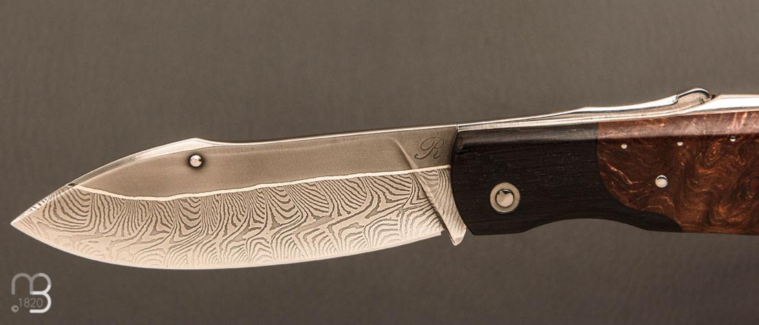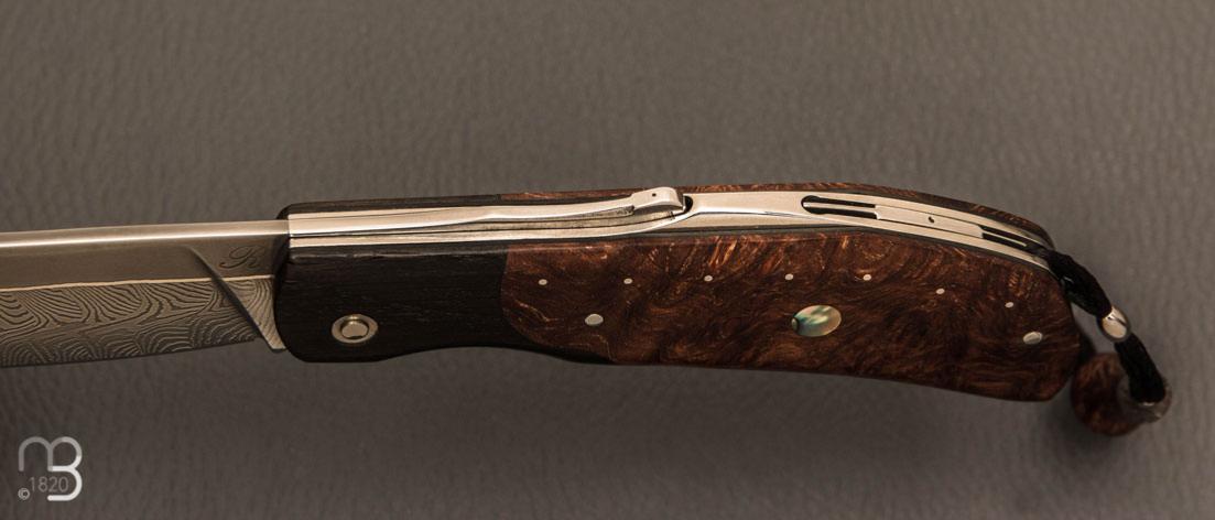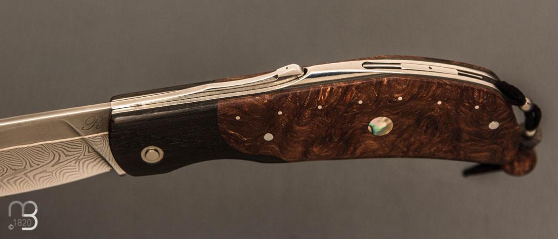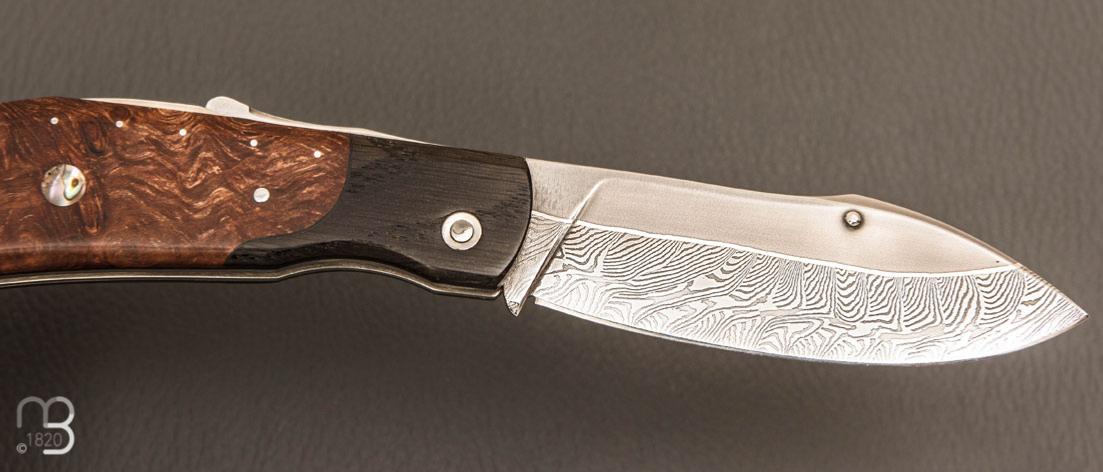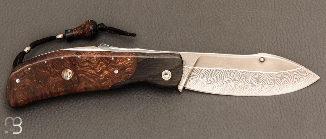 •   Couteau " Dépeceur lock-back " par Tony Ruot - Damas et loupe de chêne