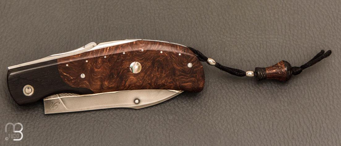 Couteau " Dépeceur lock-back " par Tony Ruot - Damas et loupe de chêne