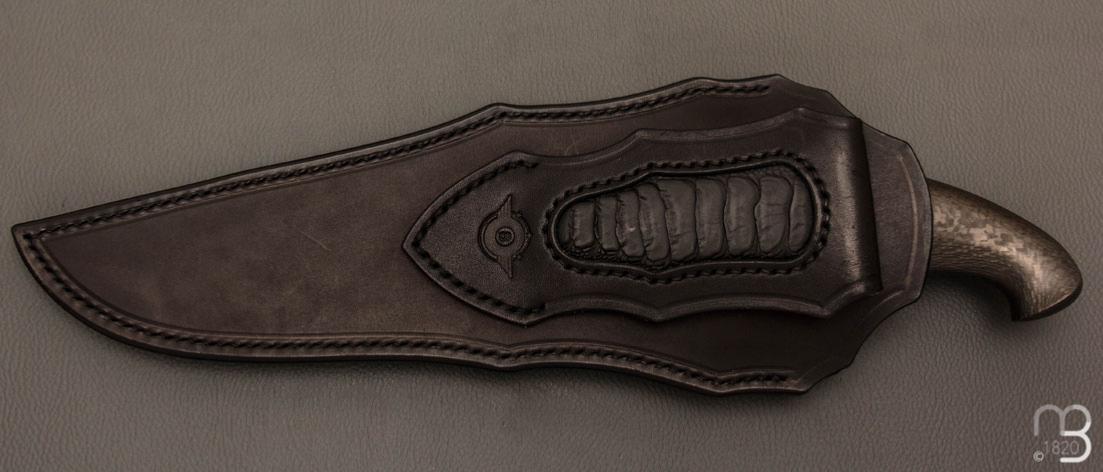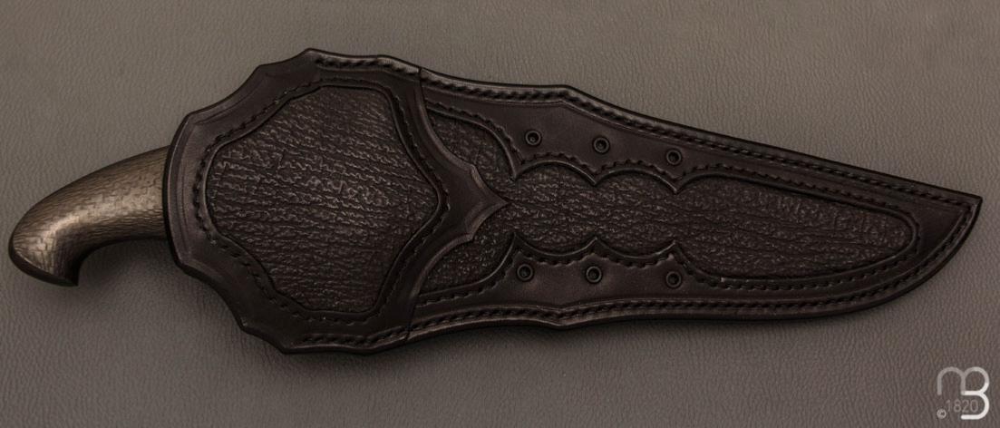 Ce couteau de Samuel Lurquin est livré avec un superbe étui en cuir, réalisé par Jeremy Guillaume - 8ballkustomleatherwork.