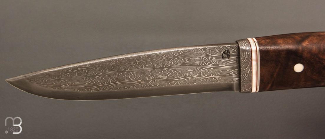 •  Couteau Droit noyer et Damas multi-barreaux par Jean Paul Sire