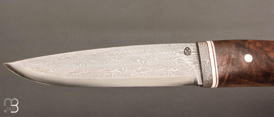 Couteau Droit noyer et Damas multi-barreaux par Jean Paul Sire