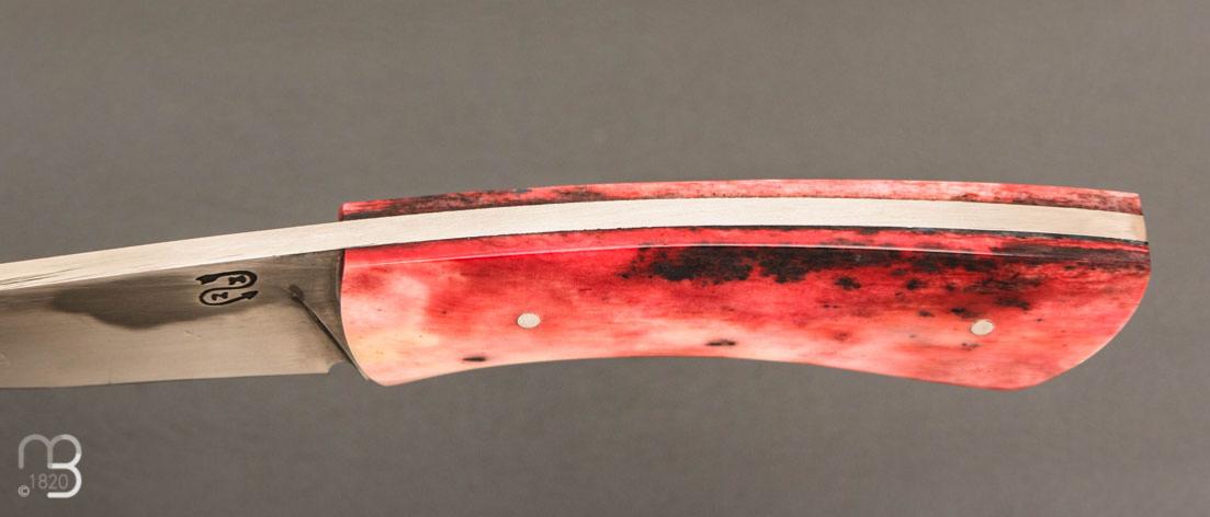Un très beau couteau droit forgé de la main de Nicolas Mestrallet, avec lame en acier carbone C130 et manche en os