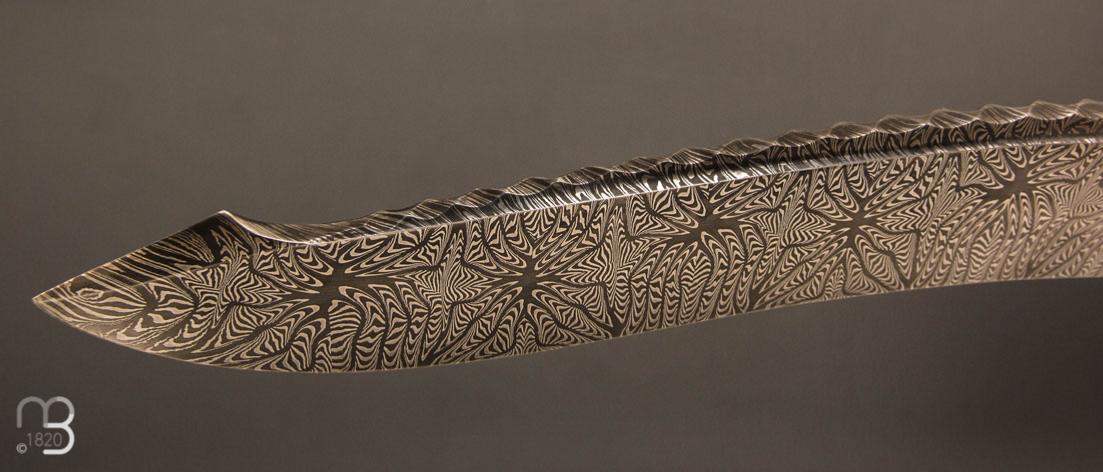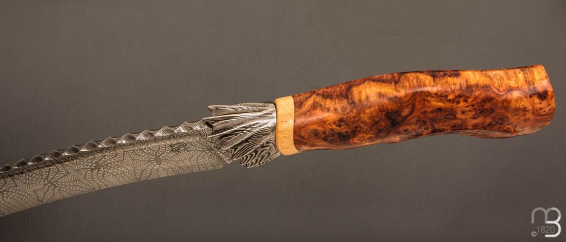 •   Couteau droit par Nicolas Mestrallet - Lame forgée acier damas et loupe d'amboine