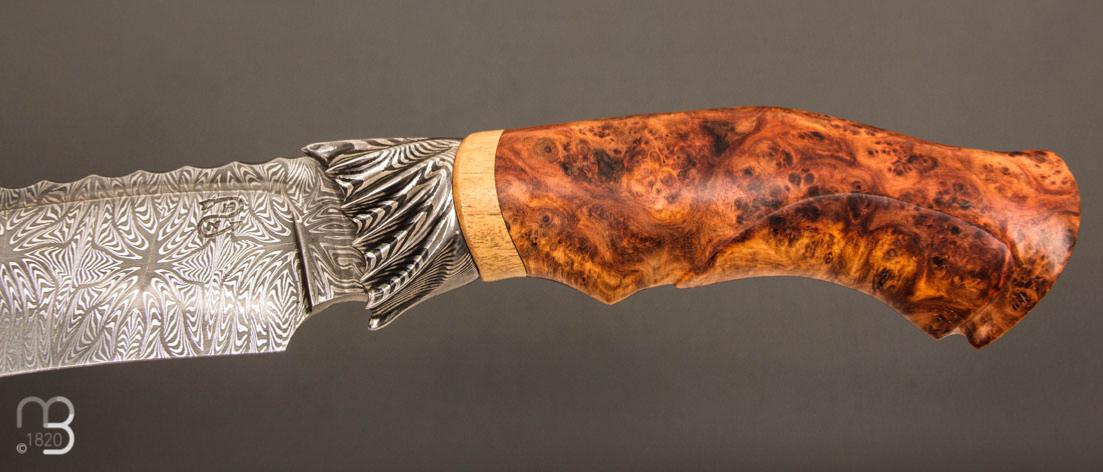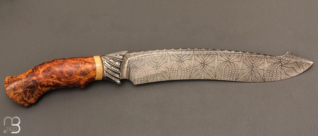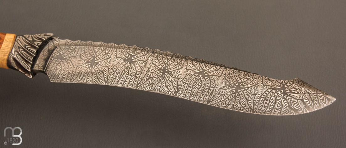 Couteau droit par Nicolas Mestrallet - Lame forgée acier damas et loupe d'amboine