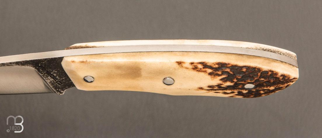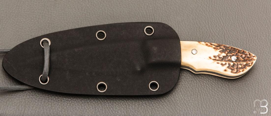 Couteau droit utilitaire artisanal de Fabien Chapaveire - Bois de cerf et acier 80CrV2