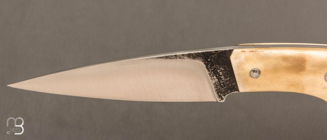Couteau de poche fait main utilitaire de Fabien Chapaveire, avec manche en bois de cerf et lame en acier 80CrV2