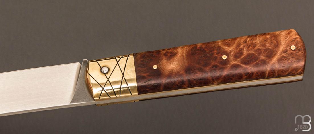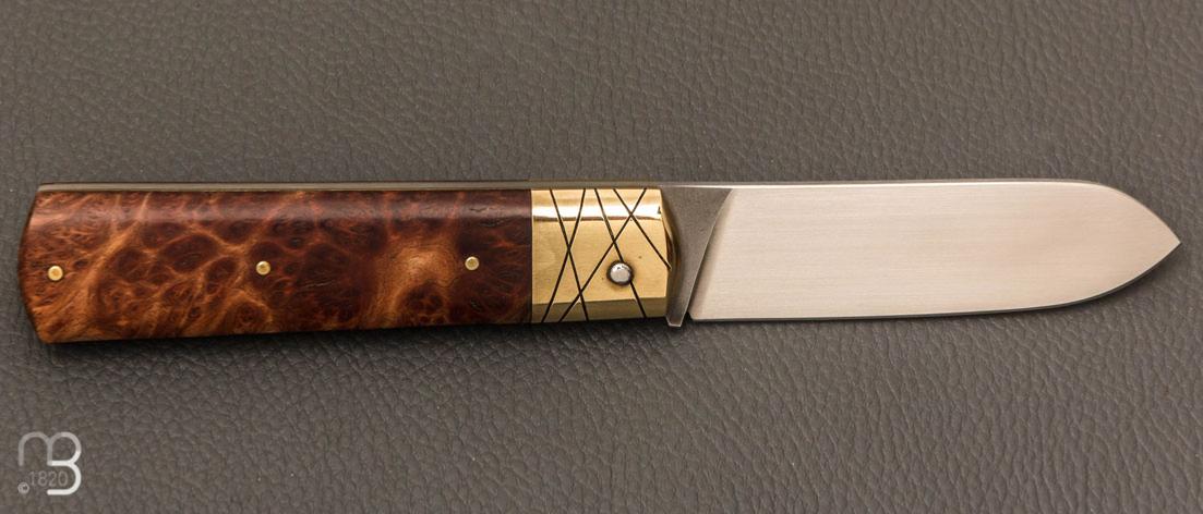 Couteau " Fatson " custom par Olivier Ouertal - Loupe de red mallée et lame en RWL-34