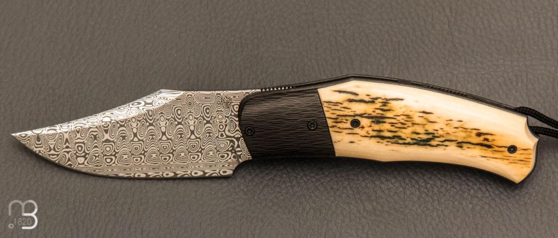 Couteau " Front-flipper custom " par Fabrice Delbart - Forge Celtique - Ivoire de mammouth et Damas