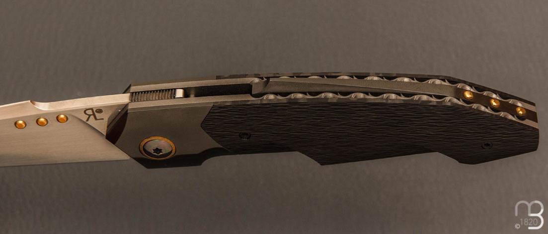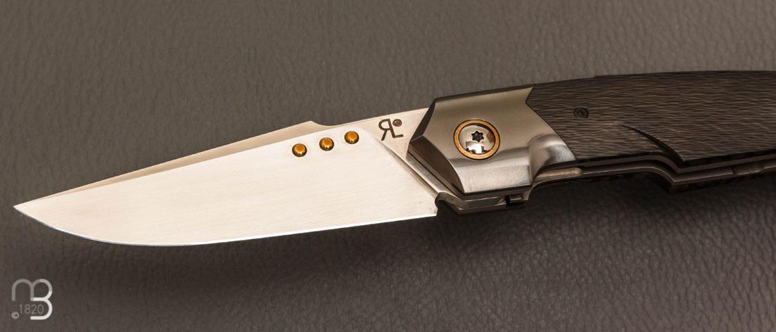•   Couteau " Front-flipper " custom par Romain Lopez - Fibre de carbone "Sidecut" et RWL34
