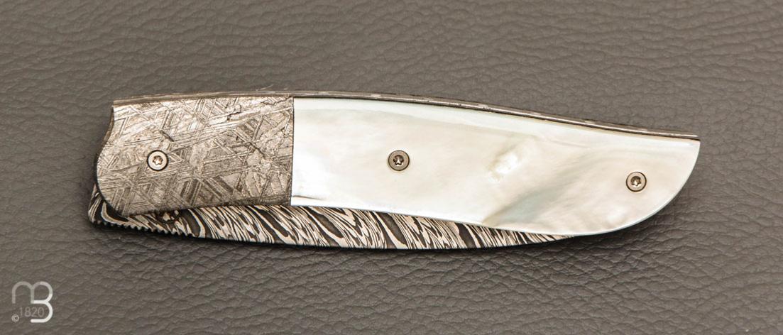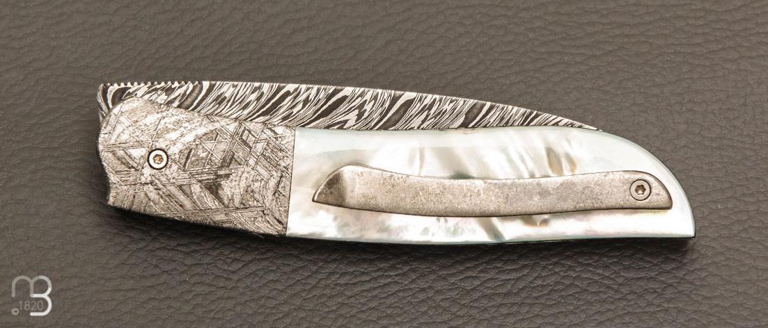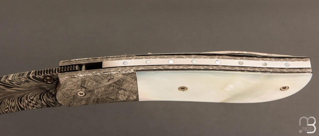Couteau " GYR " front-flipper par Tim Bernard - Nacre blanche et météorite